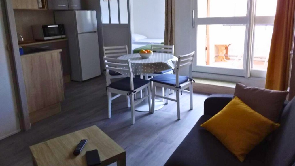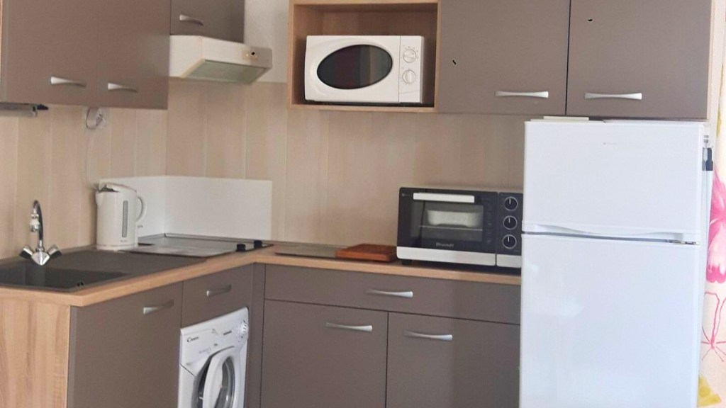 Le logement est idéal pour un couple avec 1 ou 2 jeunes enfants. il possède une cuisine équipée avec four, micro-ondes, réfrigérateur/congélateur, bouilloire, cafetières filtre et Senseo, divers électroménagers, grill électrique et plancha, lave linge,